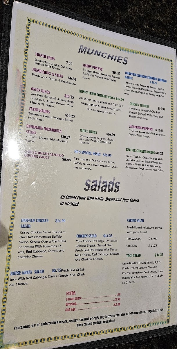 The side orders are equally tempting, with options ranging from crispy bacon to fluffy eggs, making it a perfect place for brunch or a late-night bite. Enthusiastic patrons rave about the Thursday special meatloaf and the fully loaded nachos, enhancing the experience of karaoke nights that entertain guests. Uncle Mo's isn't just about food; it's a cherished gathering space that resonates with lively energy and a warm atmosphere.